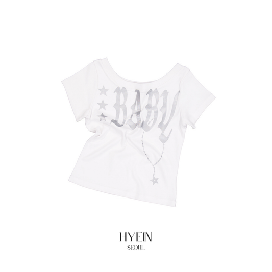 Baby wide neck top / white【Hearts2Hearts(H2H) イアン着用】