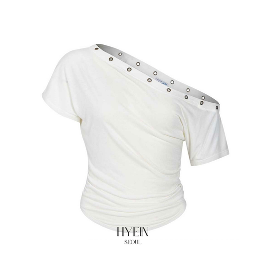 Harry button unbal shirring short top / ivory【aespa ウィンター着用】