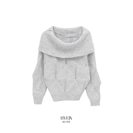 Kened punching off-shoulder wool knit / gray【Hearts2Hearts(H2H) イアン着用】