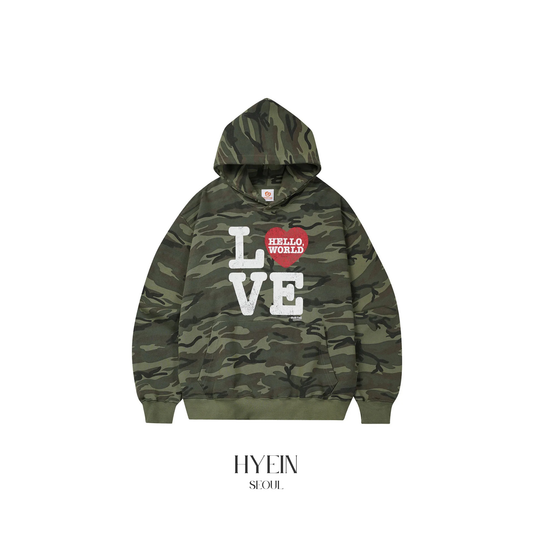 Hello world love hoodie / camo【Hearts2Hearts(H2H) イアン着用】
