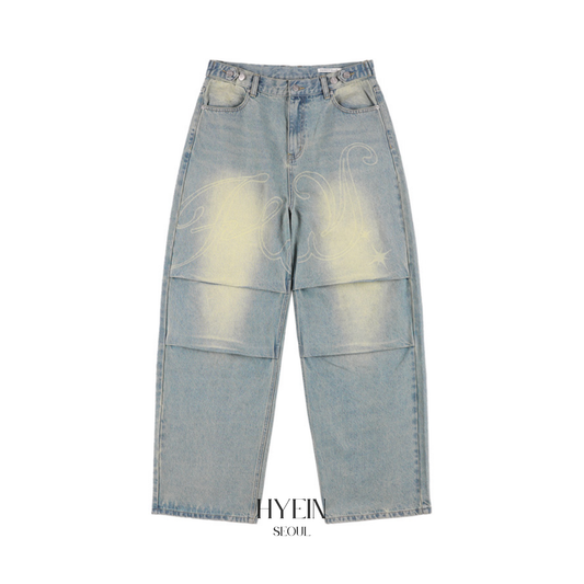 [IVE Ray wears] Angel vintage washing pintuck pants / blue