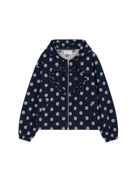 [IVE Ray wears] Frill heart hoodie / dot navy