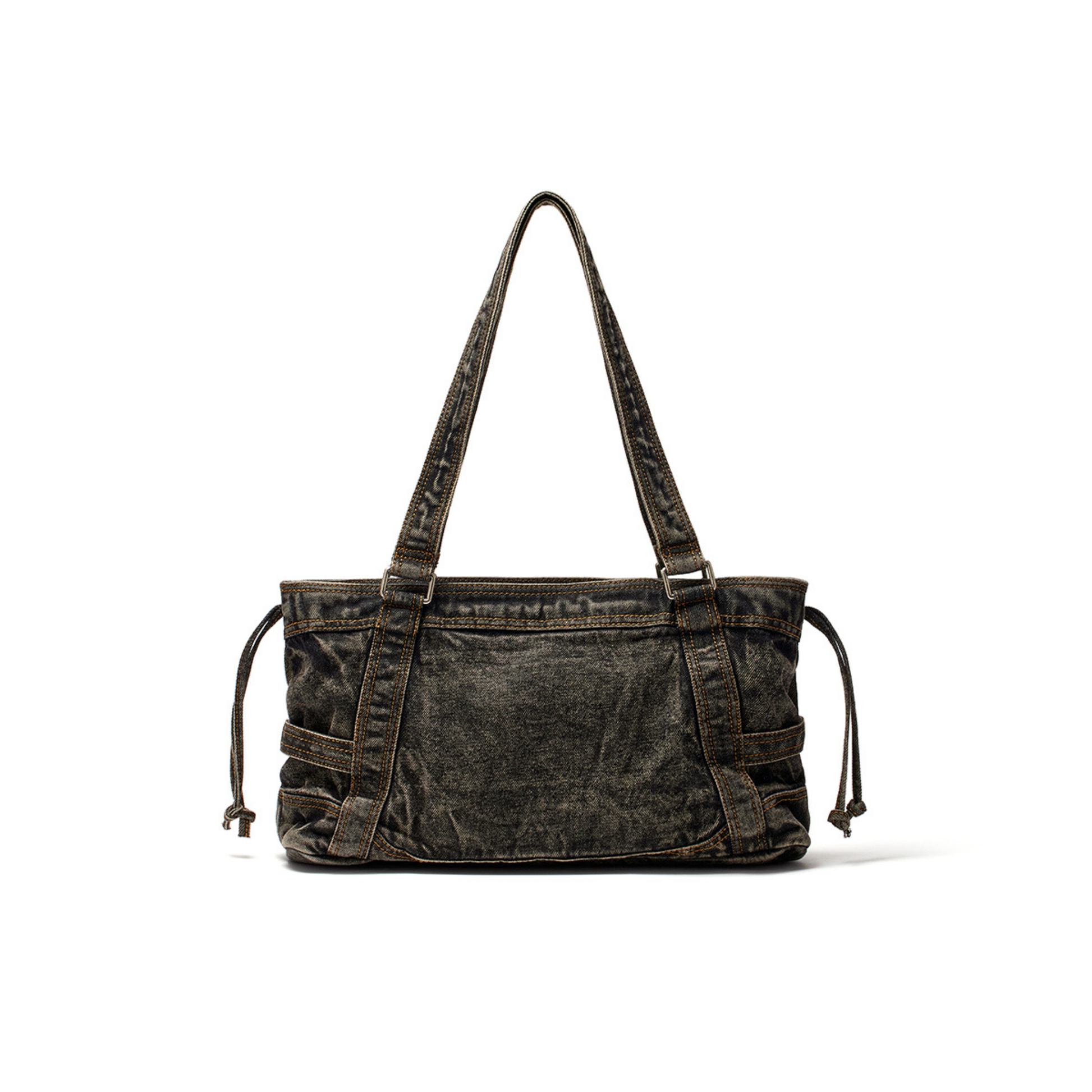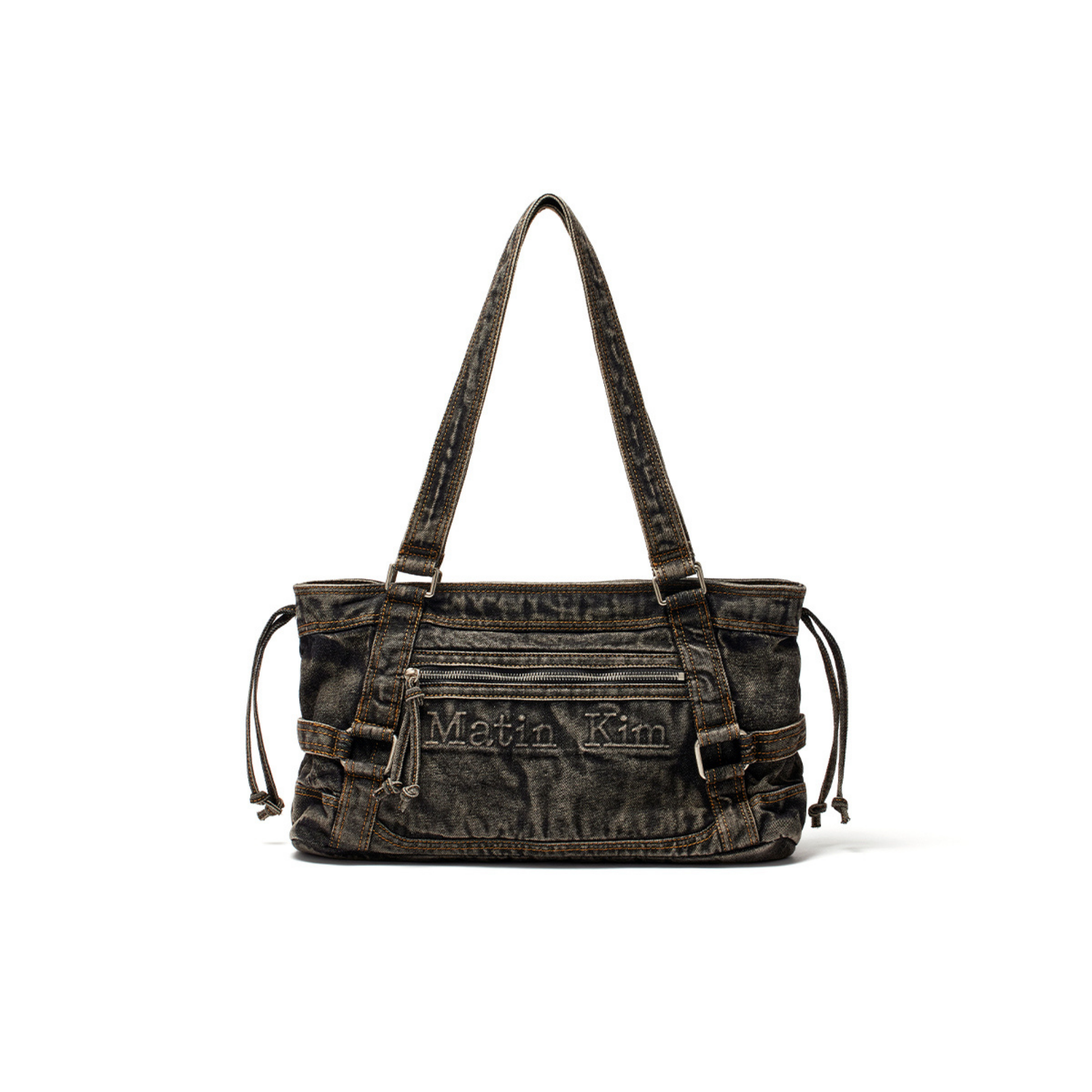 Matin washed denim square bag in black【Hearts2Hearts(H2H) イアン着用】