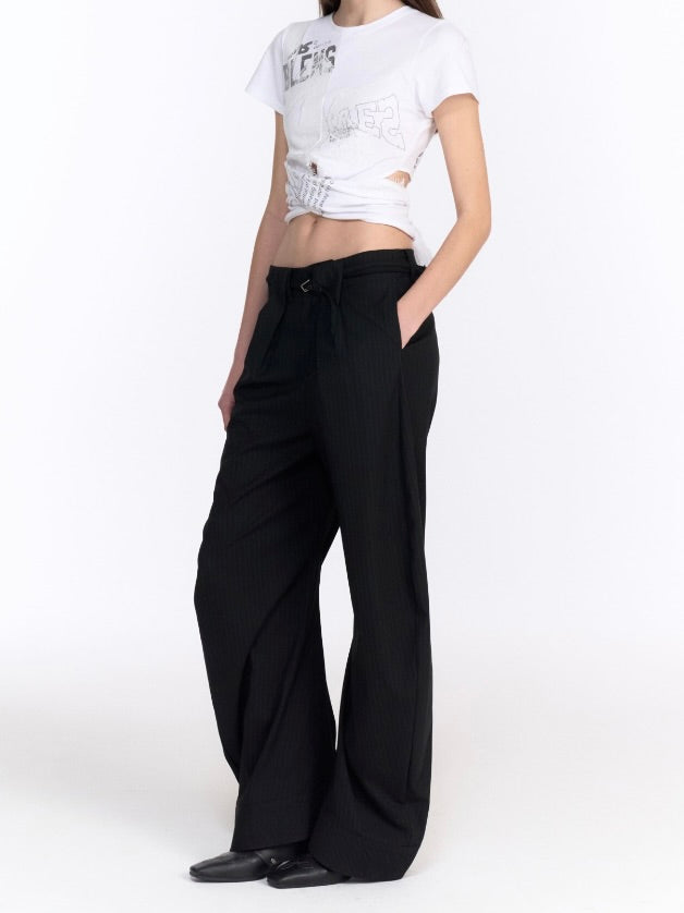 フロントの大胆な縦スリットが、クロップド丈とは一味違う計算されたヘルシーな肌見せを実現。歩くたびに生地が揺れ、他にはない圧倒的な個性とモードな存在感をアピールします。このデザインが、着るだけで自信とスタイルの良さをもたらし、あなたのファッションセンスを格上げします。