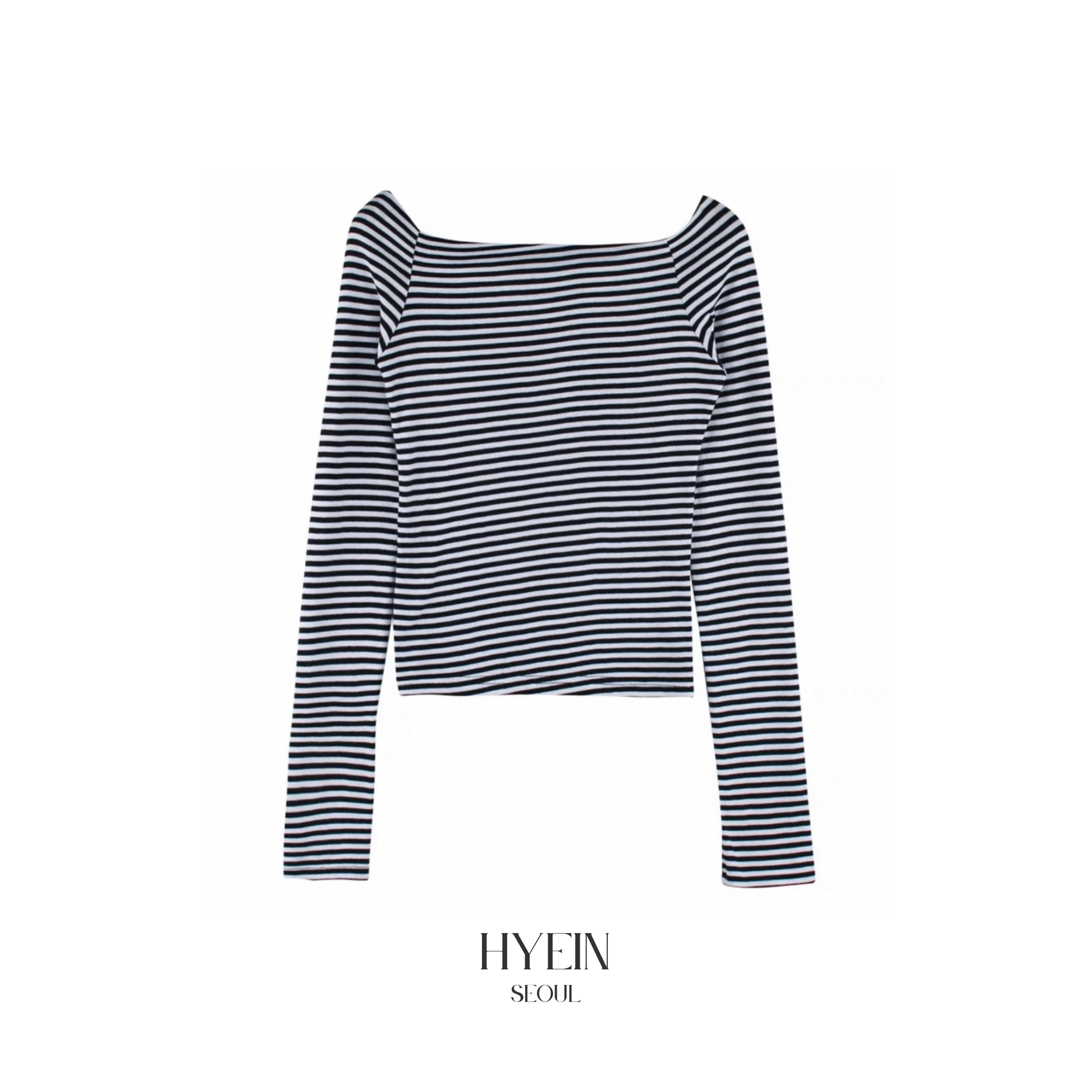 シンプルなボーダーパターンに、デコルテをきれいに見せてくれるスクエアネックのラインが女性らしさを引き立てます。