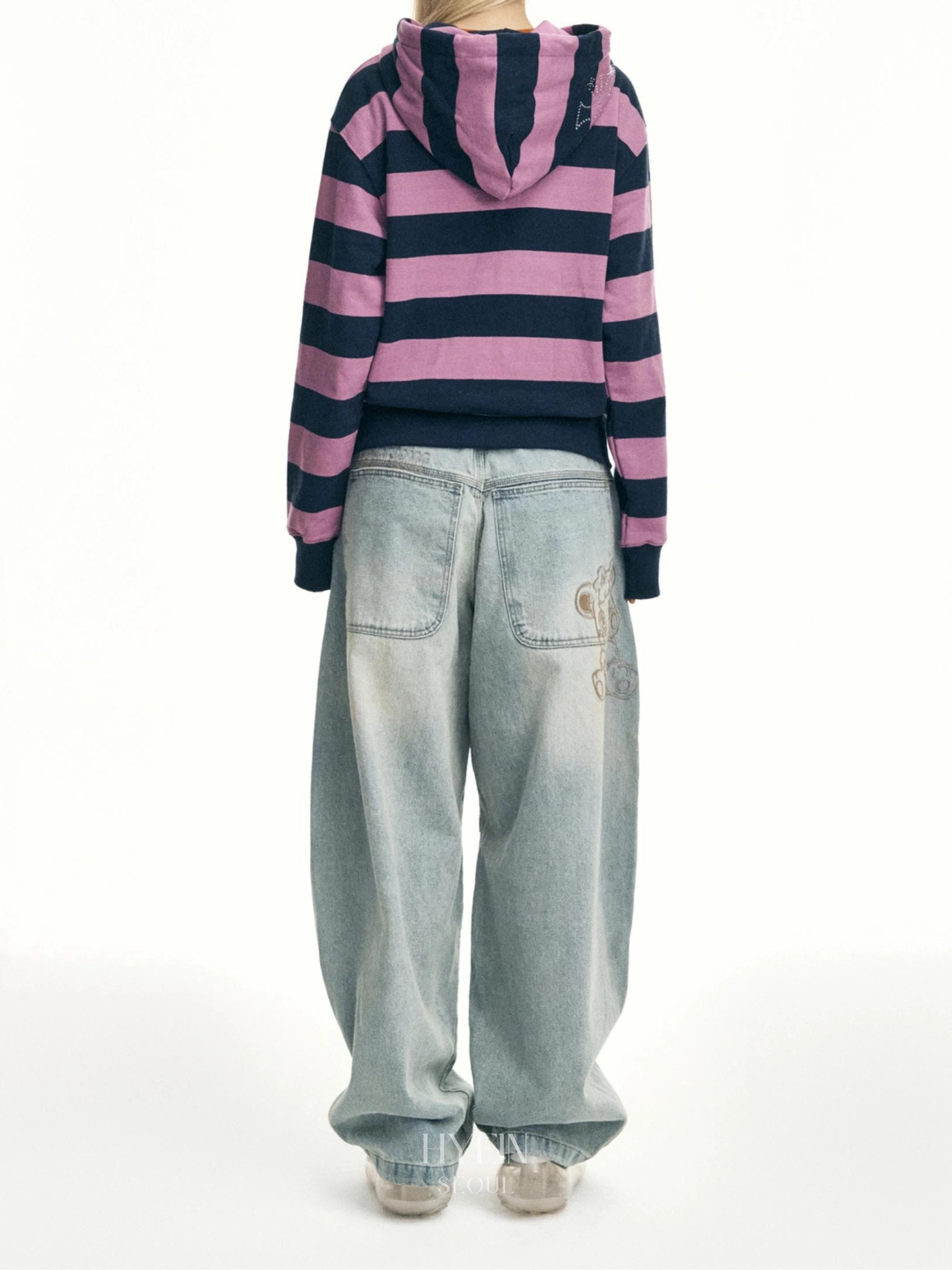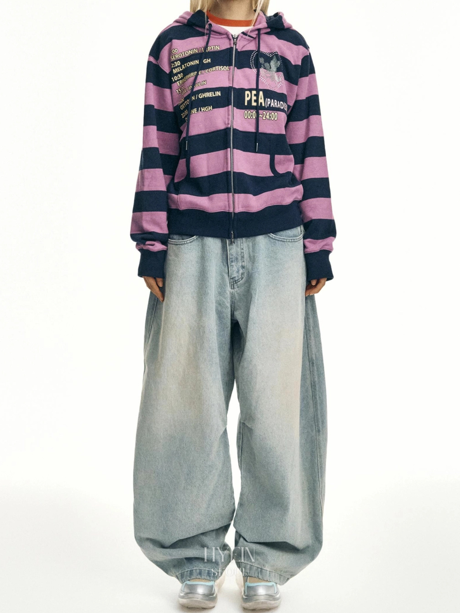 「ストリートに映える、Y2Kムード漂うボーダーパーカー」